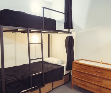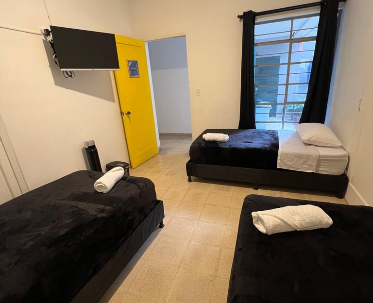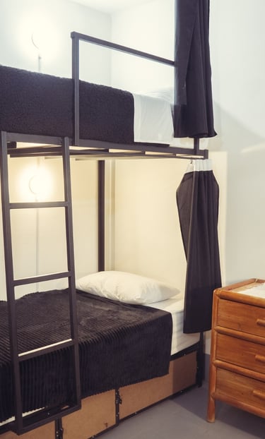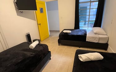 Habitaciones múltiples en hostal, ideales para viajeros que buscan economía y un ambiente social. Ofrecen varias camas en un mismo espacio.