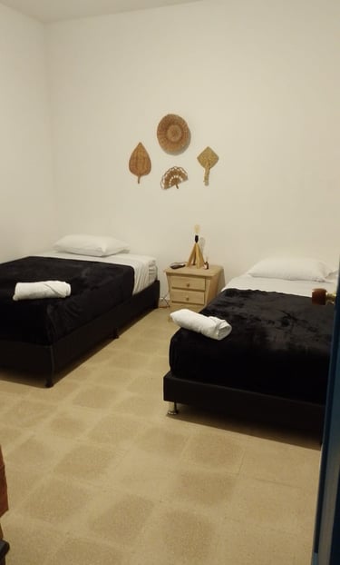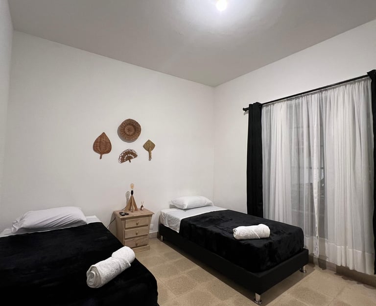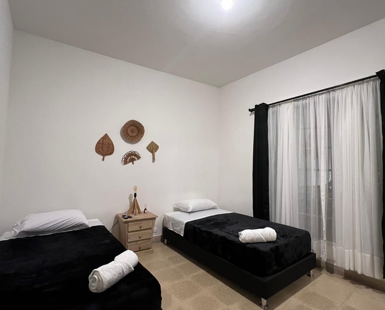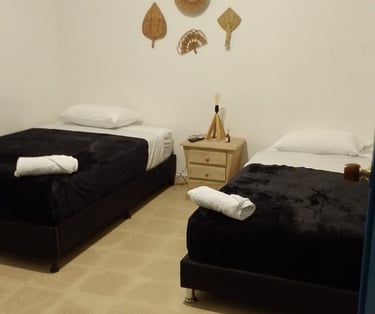 Espaciosa habitación con acomodación doble, perfecta para amigos o viajeros que buscan un ambiente seguro y un buen descanso, es todo lo que necesitas para tu días en Medellín.