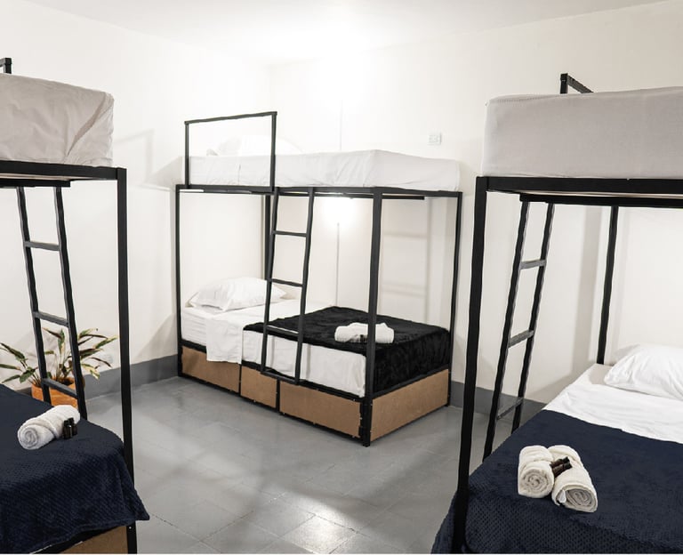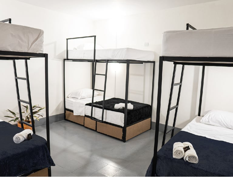 Las habitaciones múltiples son ideales para grupos, cada una, ofreciendo un ambiente cómodo y acogedor.